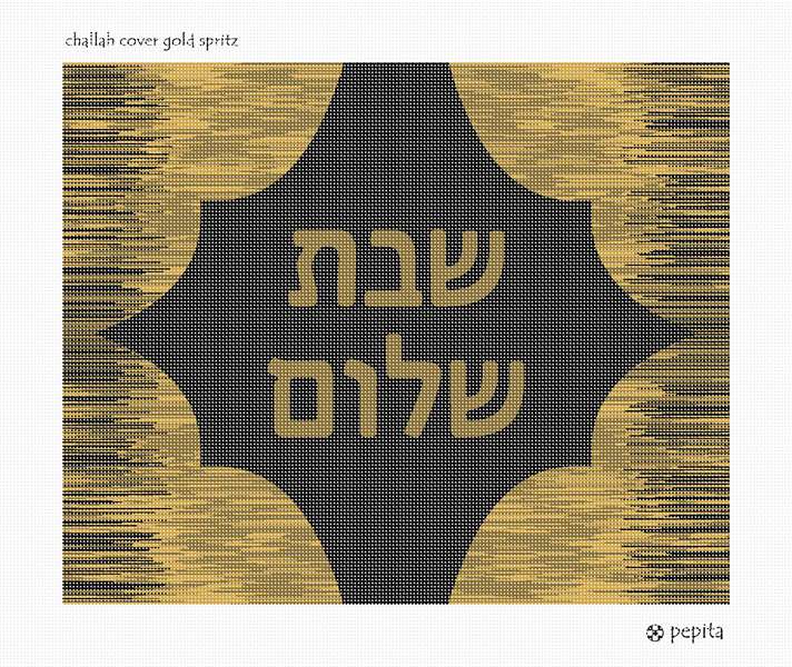 Modern Challah cover in gold. Soft and serene in honor of the Shabbos Queen. After it is completely stitched, it is sent to a professional finisher who adds a lining and a fringe or rope border.