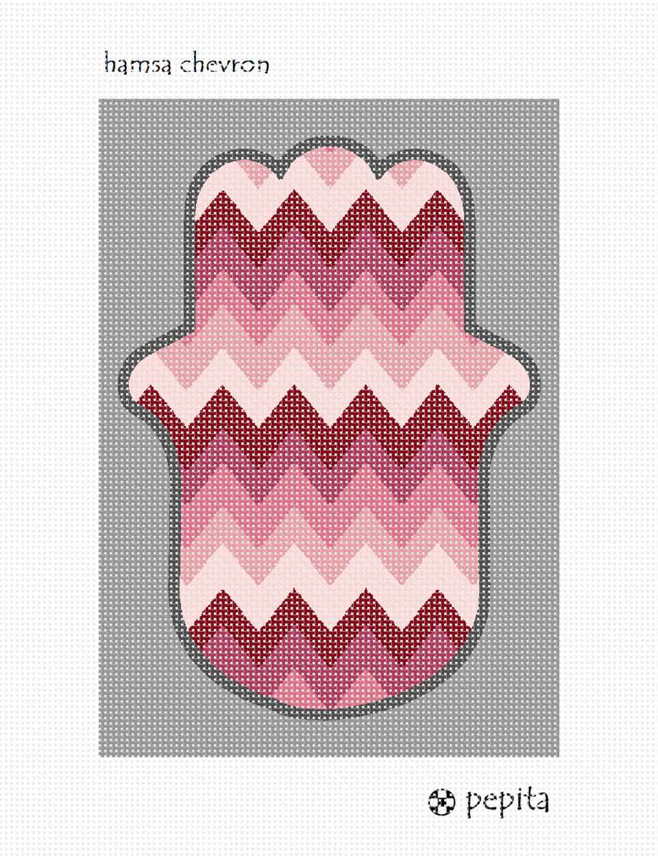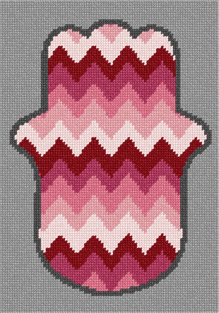 Hamsa in popular chevron pattern. A hamsa is a palm-shaped amulet popular throughout the Middle East and North Africa and commonly used in jewelry and wall hangings.
