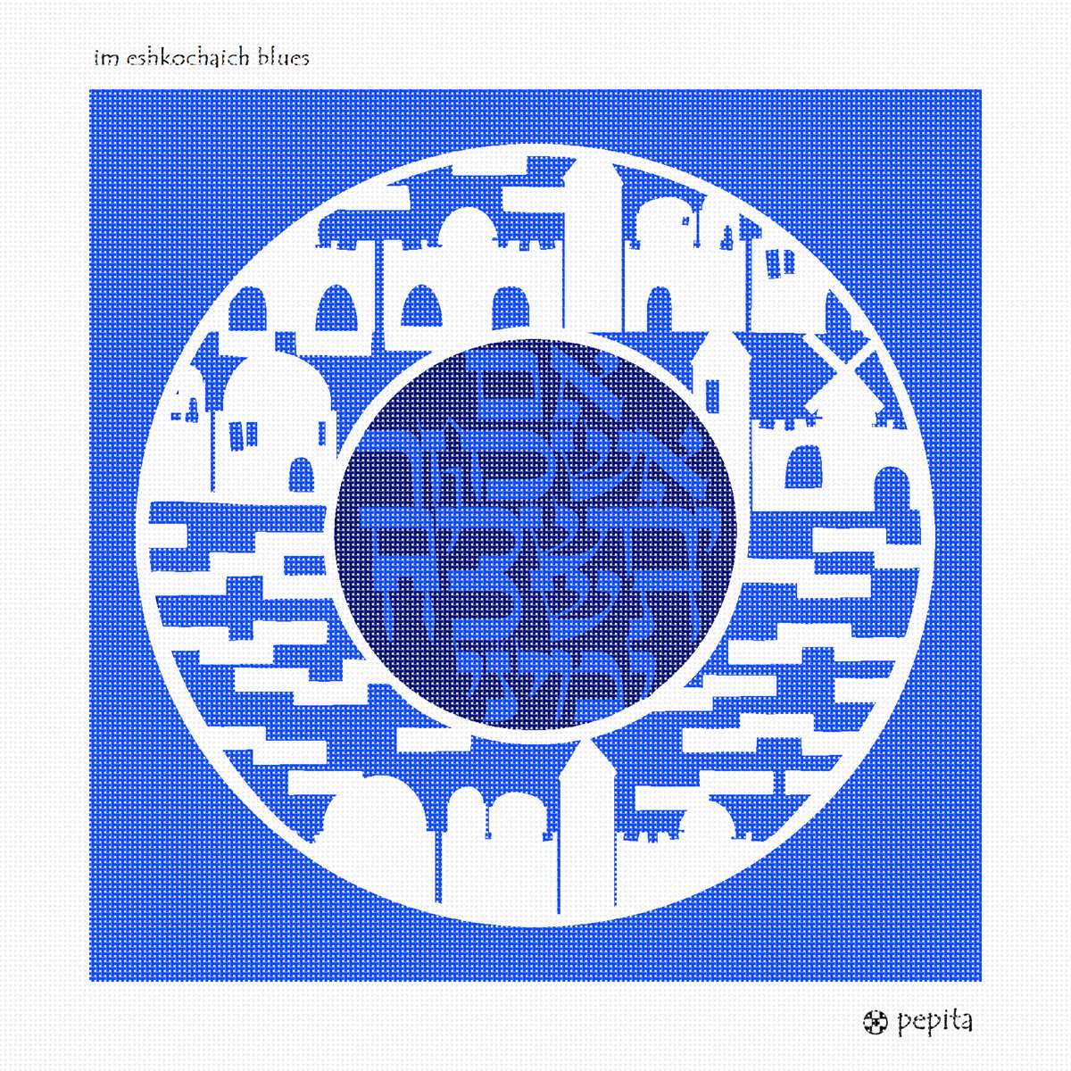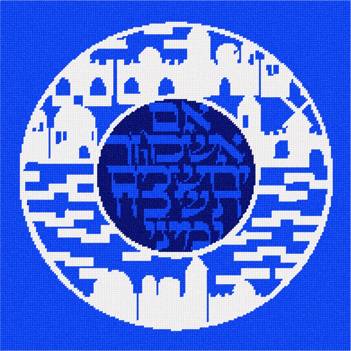 The Hebrew verse from Psalms 137: If I forget thee, Jerusalem, let my right hand forget its cunning. Jerusalem scenes are very popular in needlepoint. Many Jewish homes have a Jerusalem plaque adorning the walls. The royal blues and white resemble the Isreali flag colors.
