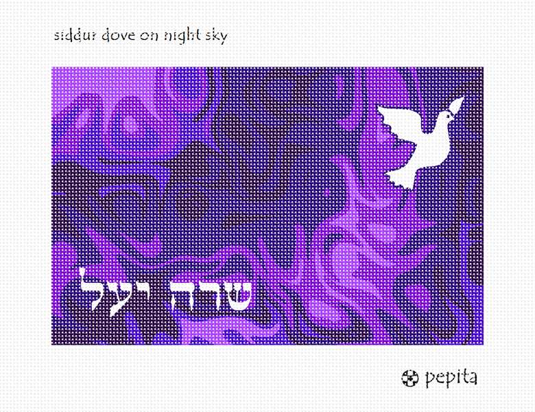 Dreamy night sky in the background. Peaceful white dove in the foreground. Many mothers and grandmothers stitch tefillin and tallit bags for the boys. They stitch siddur covers for the girls. Many schools have siddur ceremonies where the siddur cover is custom made.