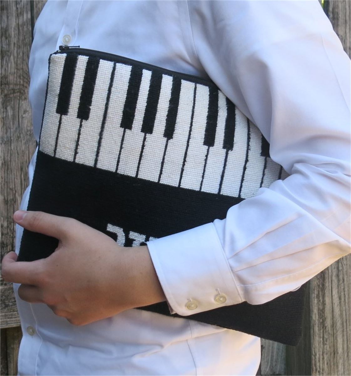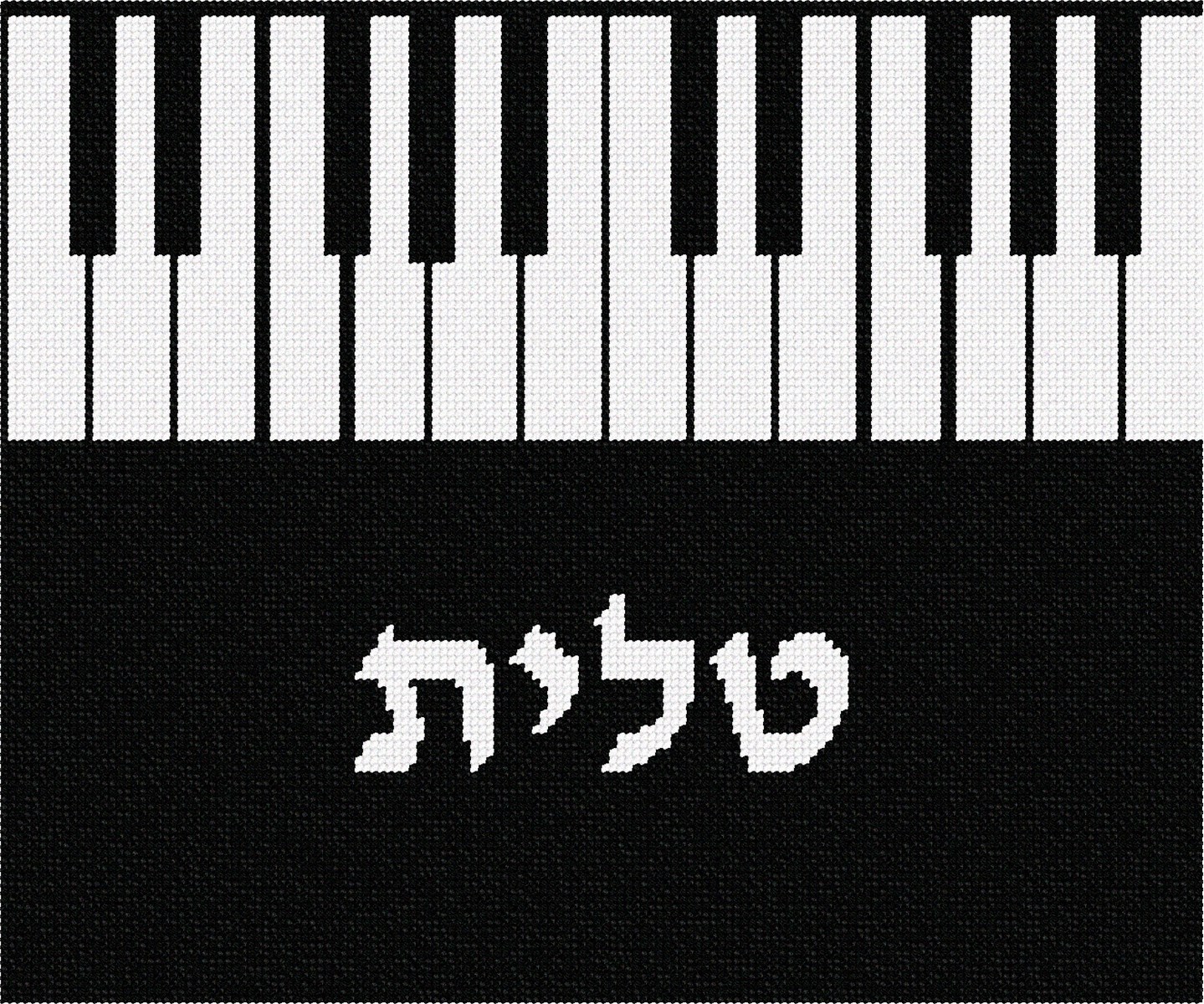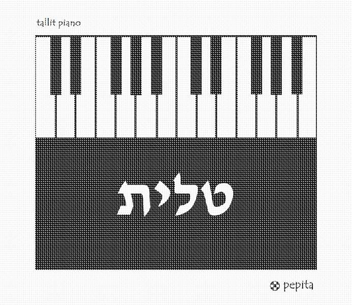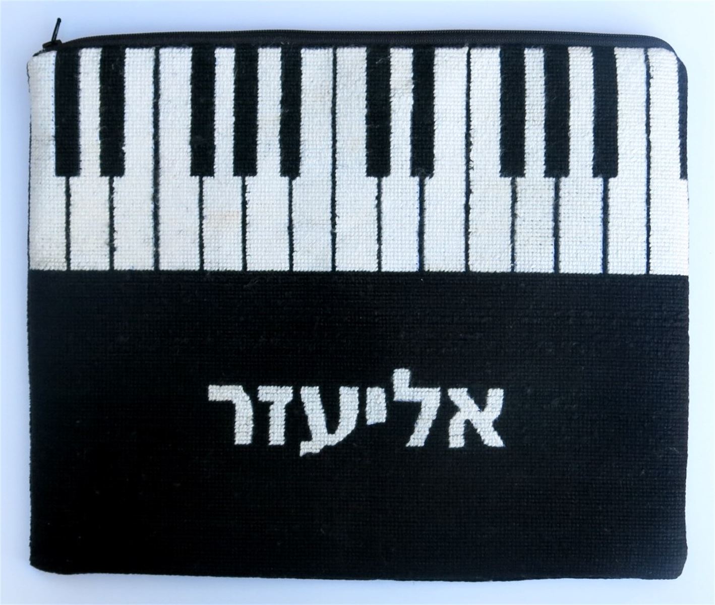 A tallit bag for the musical person in your life. This is a modern, neat design. You stitch the front. After it is completely stitched, it is sent to a professional finisher who adds a lining, back, and matching zipper. There is a matching tefillin bag available for this design.