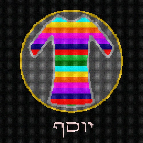 Joseph, Jacob's favorite son, for whom he made a special coat of many colors, as depicted in this canvas, was known for his purity. Also called Yosef HaTzadik, he successfully withstood daunting spiritual challenges during his sojourn in ancient Egypt.