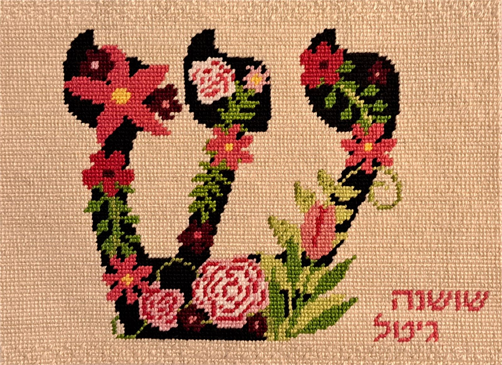 Letter Shin in Hebrew. Decorative Floral monogram in all Hebrew letters available.