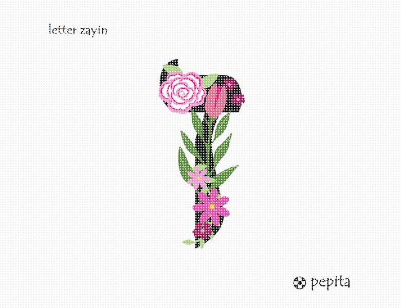 Letter Zayin in Hebrew. Decorative Floral monogram in all Hebrew letters available.