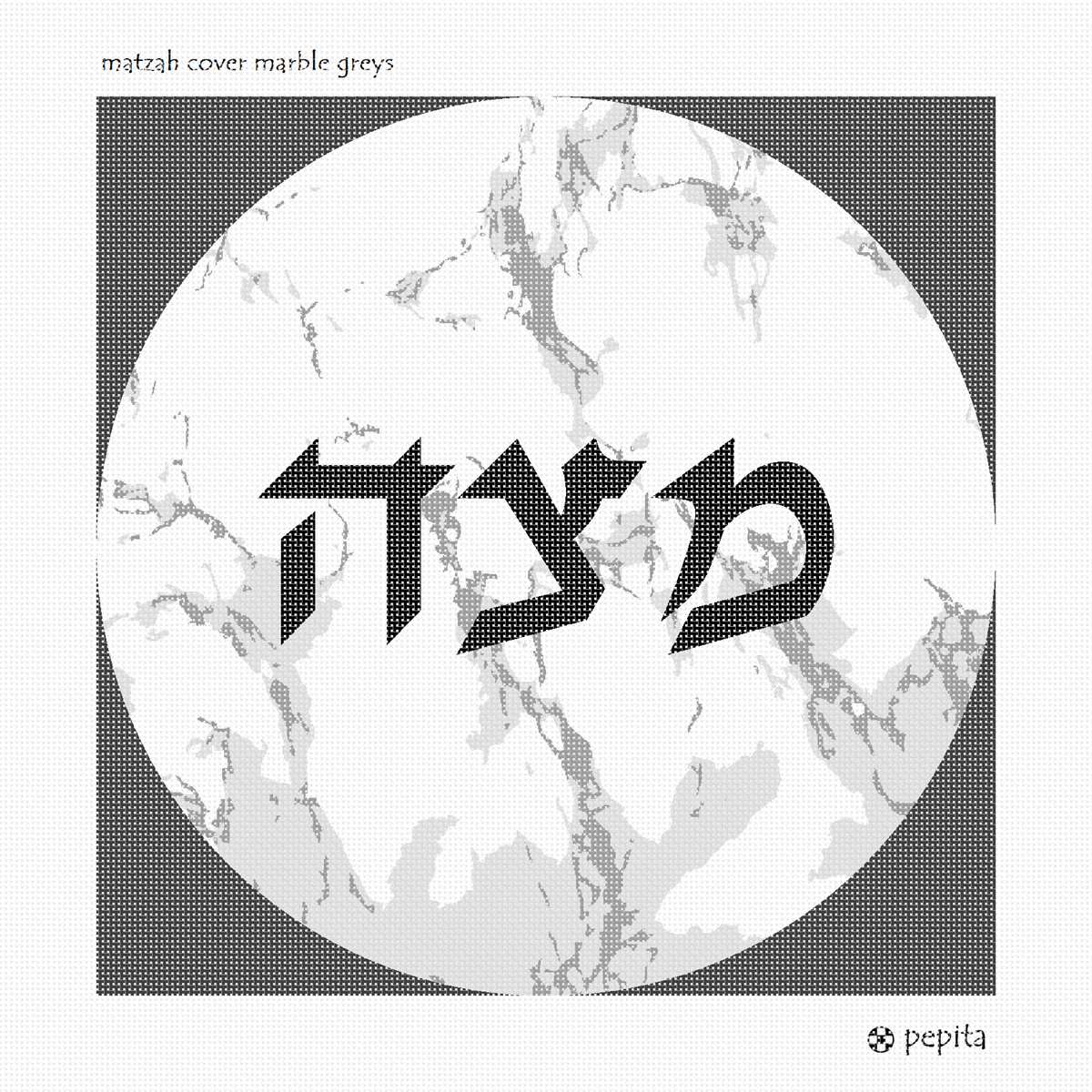 Finally a matzoh cover needlepoint for Pesach that will cover the entire matzoh. There is no need for a frame-out when finishing it into an actual matzoh cover. This contemporary design is a classic and will never go out of style. The dark grey border is not meant to be stitched; it is colored to indicate the circle shape. See coordintating Afikoman Marble Greys by Pepita Needlepoint. This is used to cover the three Matzohs at the Passover seder. It is also used to cover the two Matzohs used at the other Passover meals.