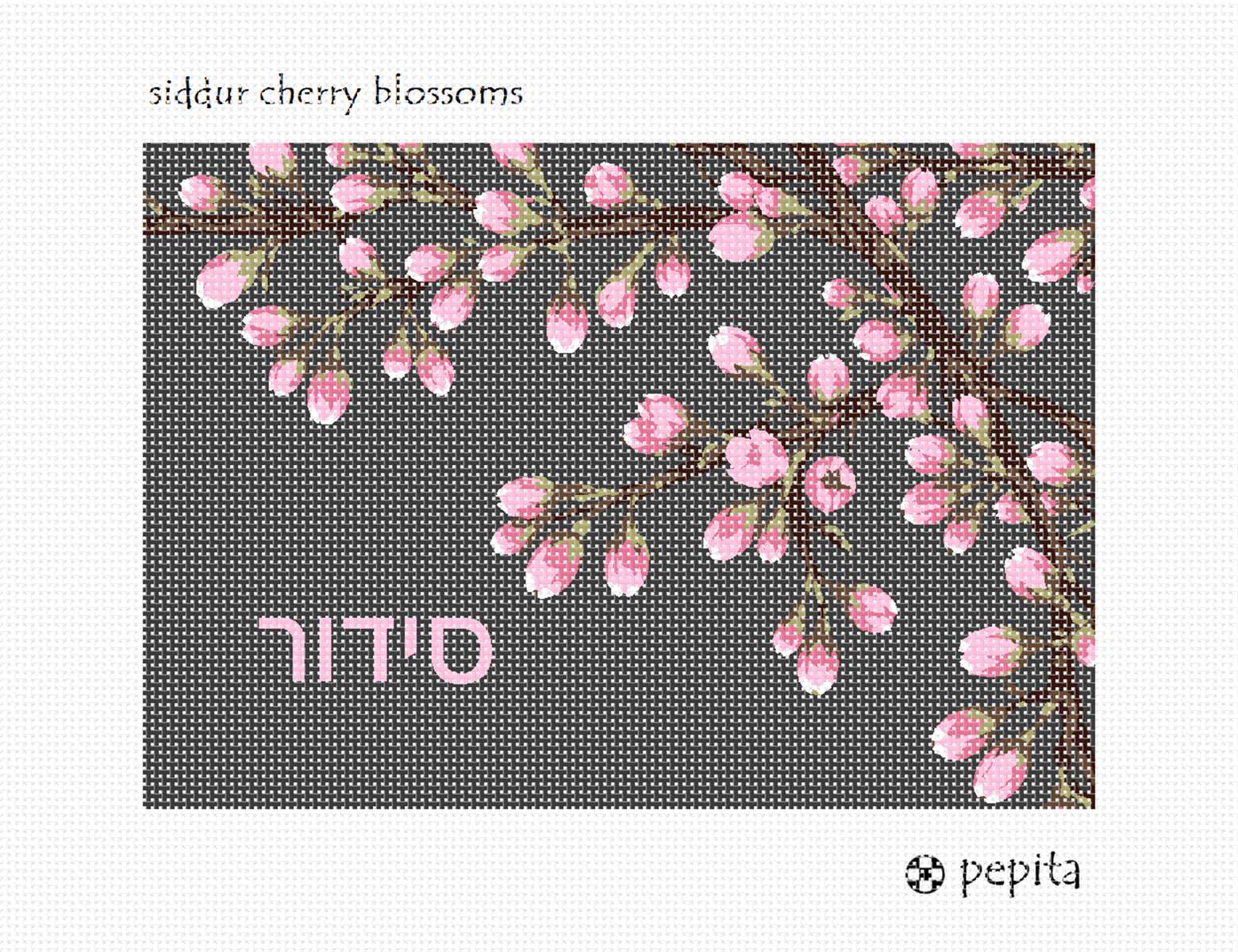 Cherry blossoms gracefully arch across this book cover needlepoint design.