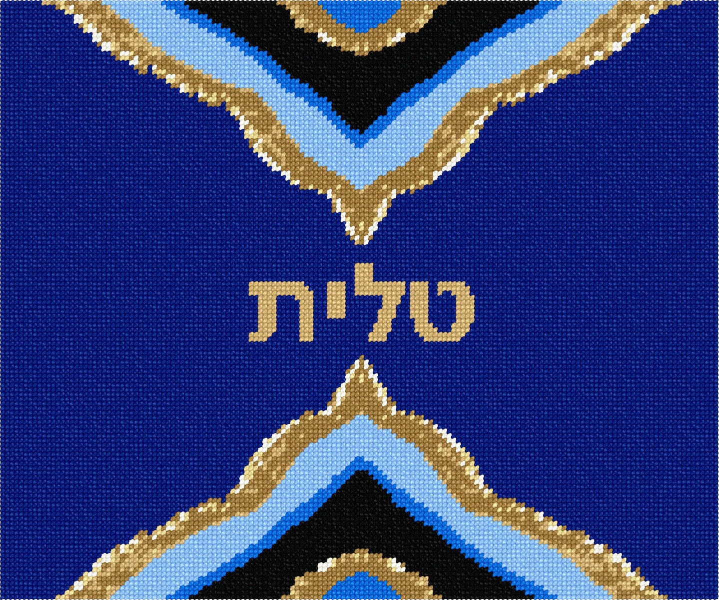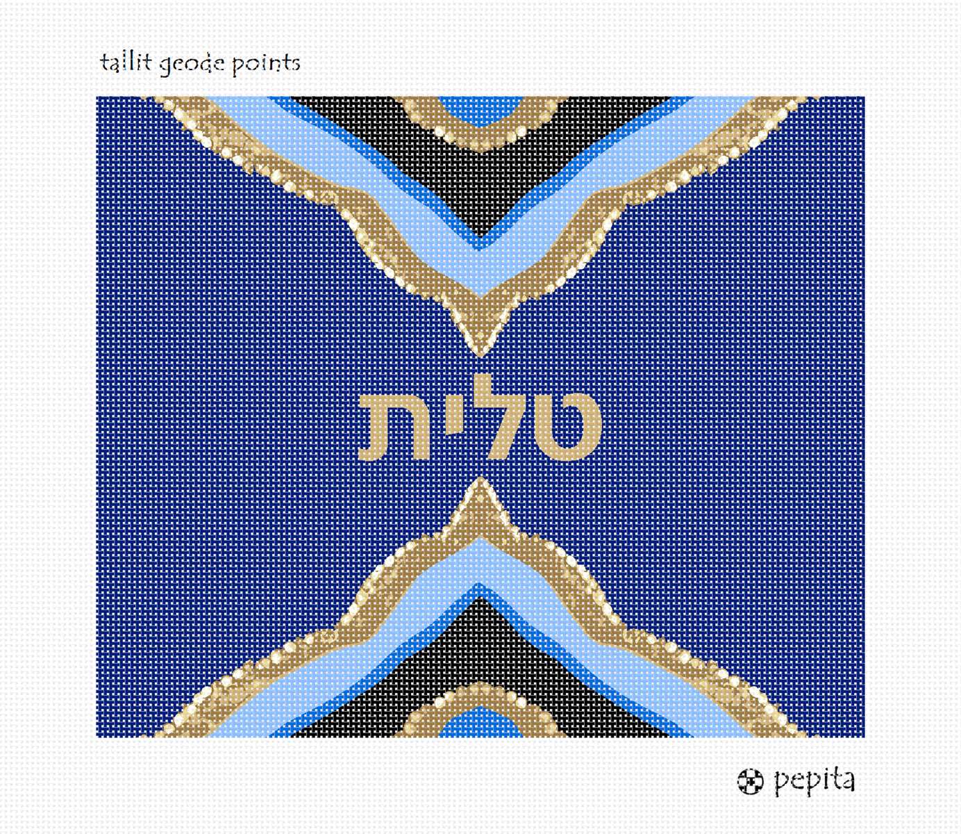 A geode is a stone having a cavity lined with crystals or mineral matter. Most geodes contain clear quartz crystals. Geodes are found all over the world especially in desert regions.This summer I experimented with resin art to create geode looks on glass. That inspired me to design tefillin, tallit, and challah covers with geode characteristics. This one is a collage of geode patterns.