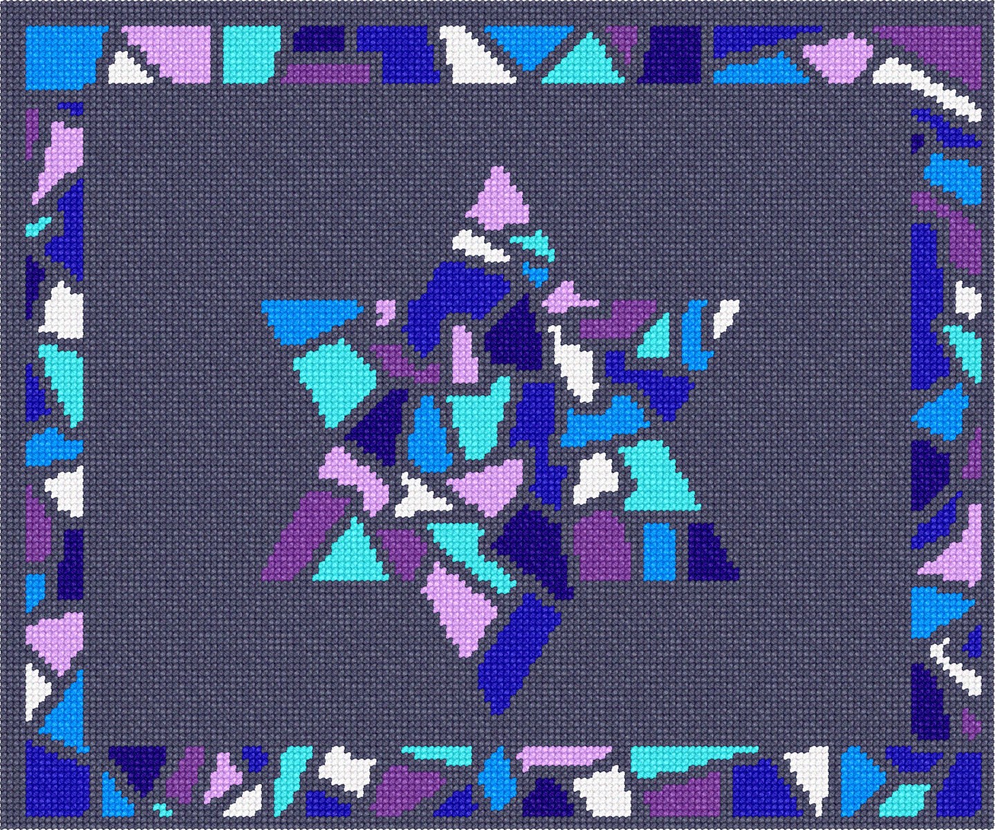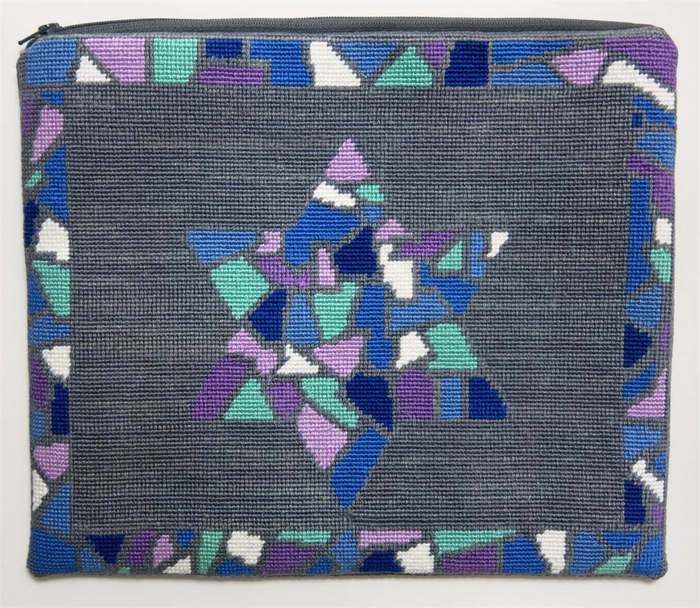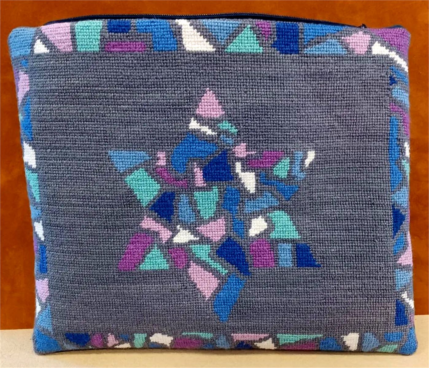 Tallit in stained glass grey variation. Stained glass design is very popular on many Judaica items.The Star of David or Magen David (literally, Shield of David), as it is referred to in Hebrew, is the most common symbol for expressing Jewish identity today. The Hebrew name for the symbol – a hexagram formed by two overlapping triangles, one pointed upward and the other downward – comes from its supposed resemblance to King David’s shield. However, use of the Star of David as a Jewish symbol only became widespread in 17th-century Europe, when it was used displayed on synagogues to identify them as Jewish places of worship. You stitch the front. After it is completely stitched, it is sent to a professional finisher who adds a lining, back, and matching zipper.