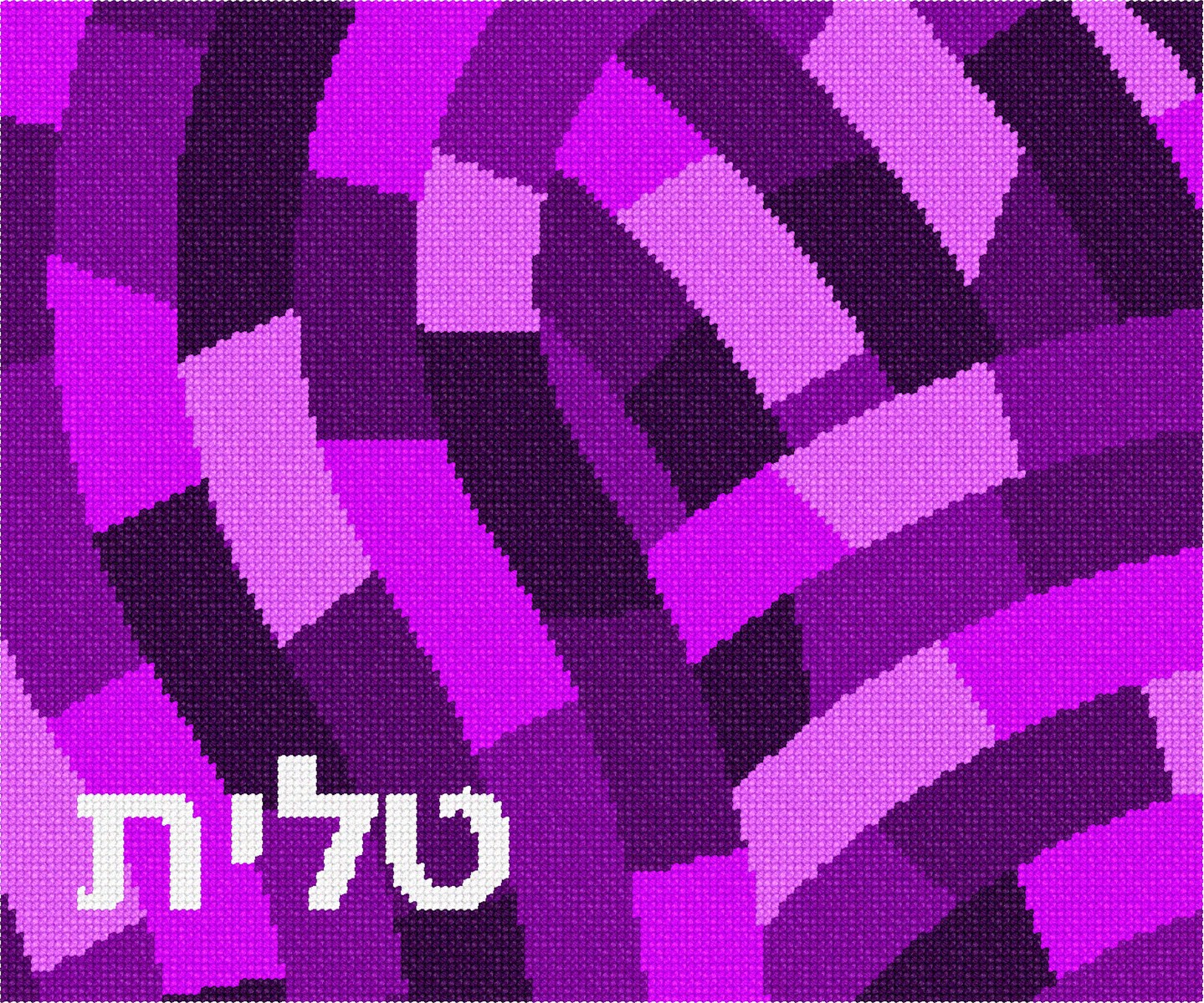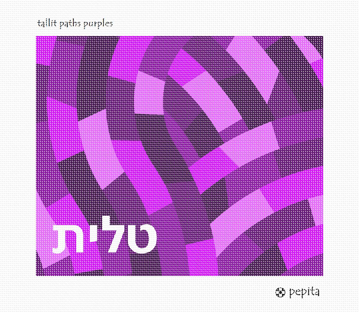 Tallit bag needlepoint canvas in shades of purples that resembles interlocking paths.