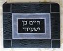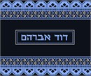 Simple design consisting of corner squares, inner rectangles, and stacked dashed lines at the edges. White text in the center.