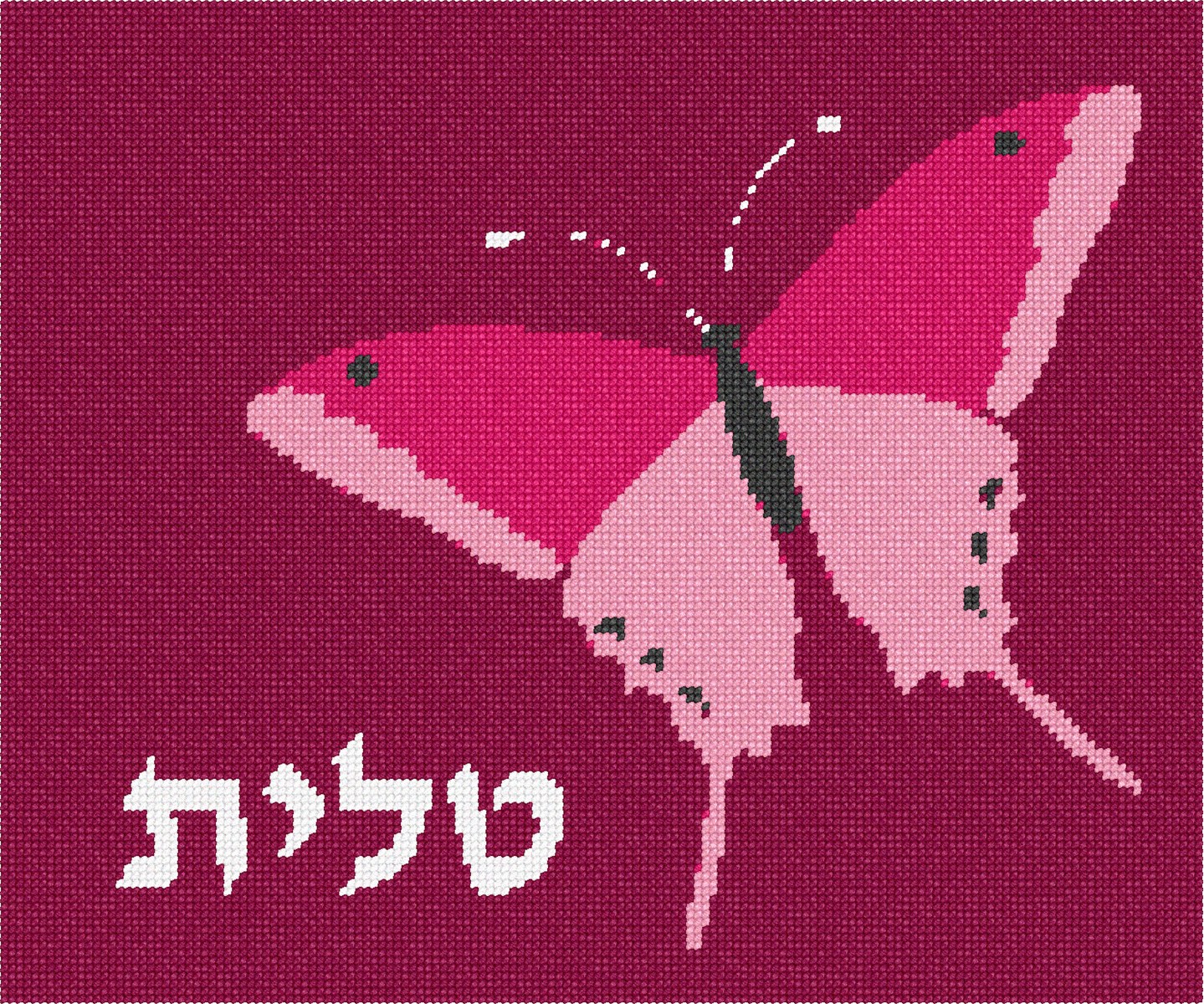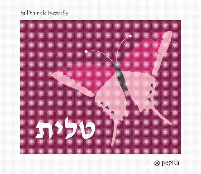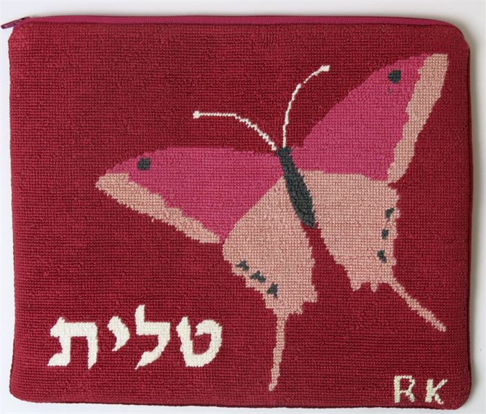 A tallit bag to needlepoint with a large butterfly in pinks and burgundy. Butterflies are deep and powerful representations of life. Around the world, people view the butterfly as representing endurance, change, hope, and life.