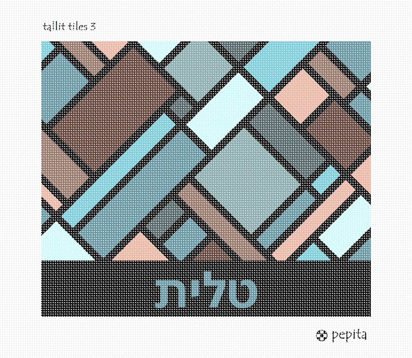 A tallit needlepoint for the front of a tallit bag in a tile pattern. Different and classy.