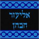 Tefillin bag with ocean colors as borders. See matching tallit bag. Geometrics are very vogue in tallit and tefillin bags today. You stitch the front. After it is completely stitched, it is sent to a professional finisher who adds a lining, back, and matching zipper.