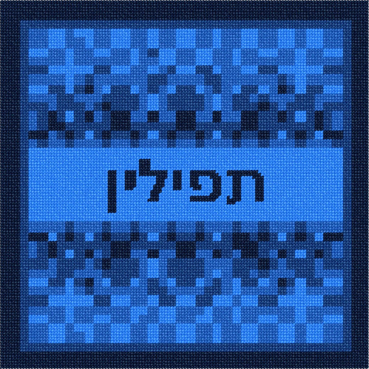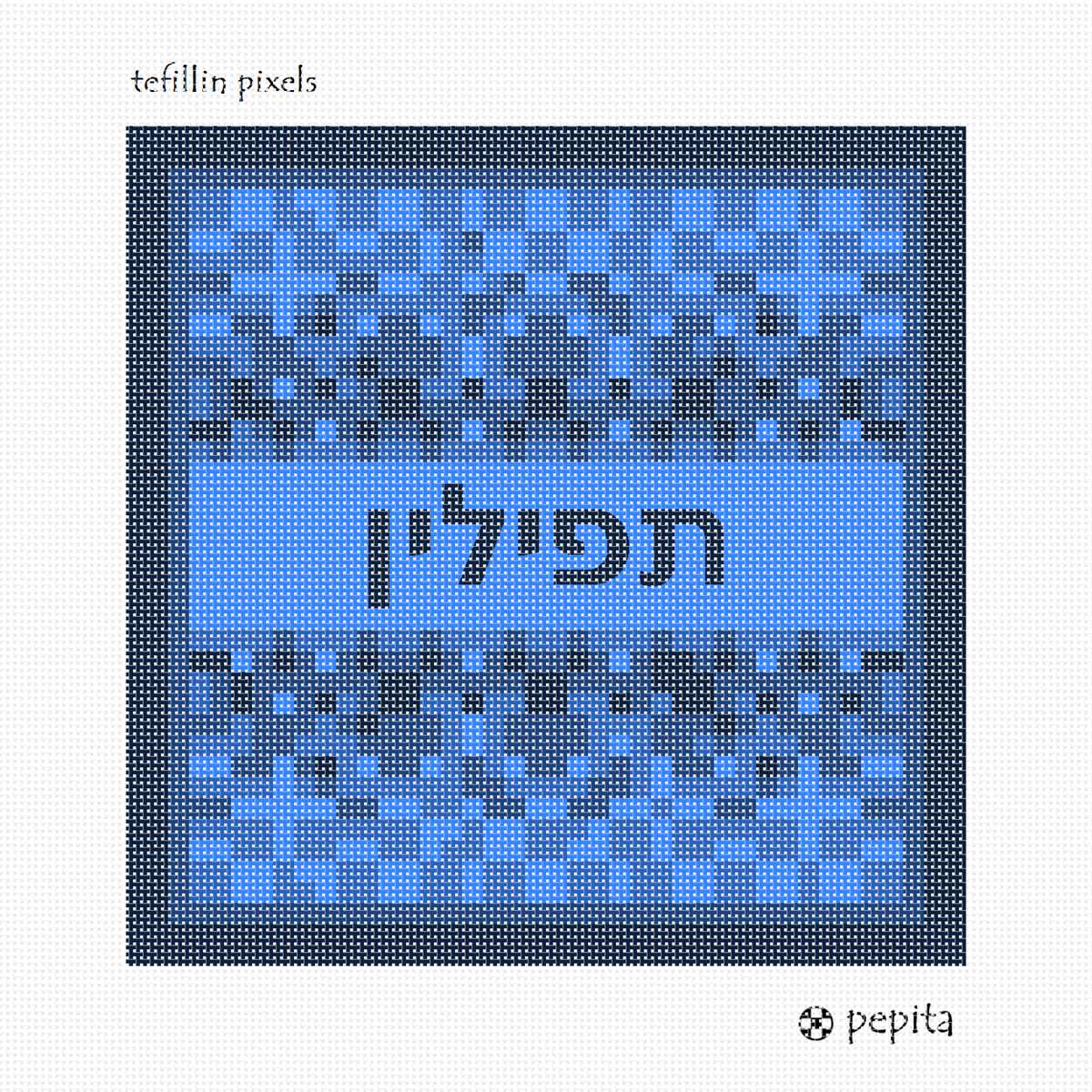 Modern and neat pixelated style tefillin bag front to needlepoint.