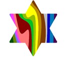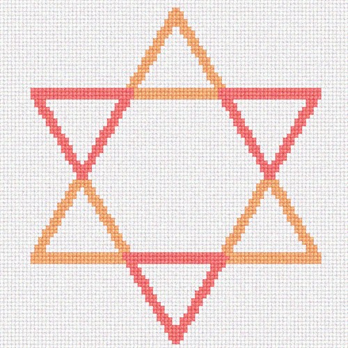 Star of David, composed of 6 triangles in two pastel colors. The Star of David or Magen David (literally, Shield of David), as it is referred to in Hebrew, is the most common symbol for expressing Jewish identity today. The Hebrew name for the symbol – a hexagram formed by two overlapping triangles, one pointed upward and the other downward – comes from its supposed resemblance to King David’s shield. However, use of the Star of David as a Jewish symbol only became widespread in 17th-century Europe, when it was used displayed on synagogues to identify them as Jewish places of worship.