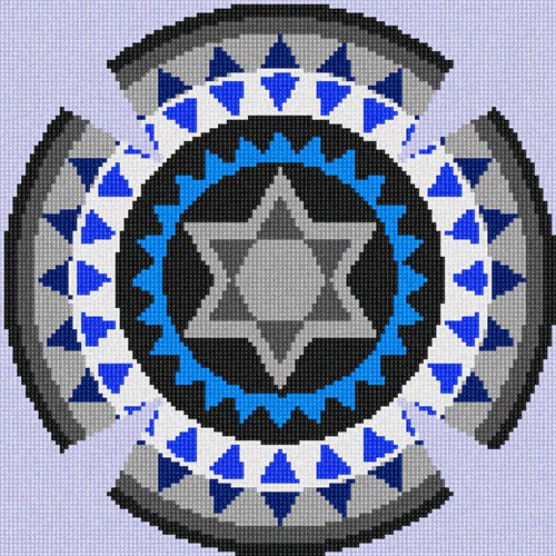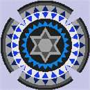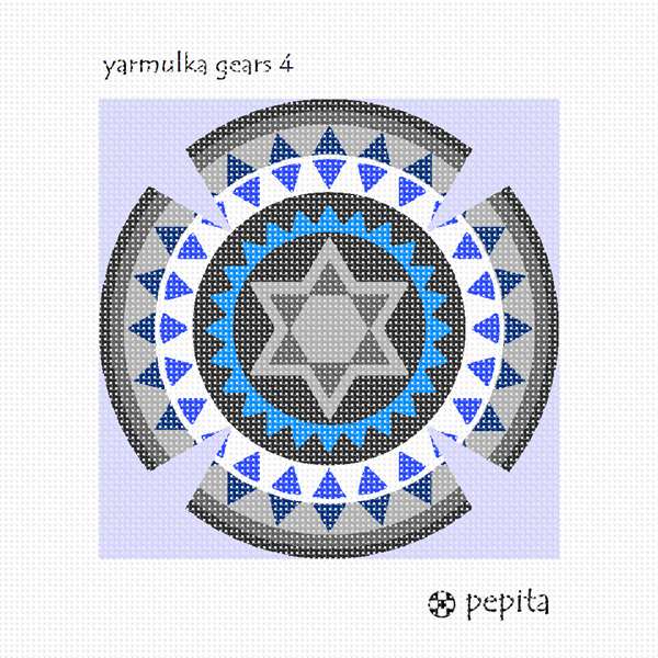 Kippah using a circular toothy pattern in vivid and contrasting colors. A kippah is a brimless cap, usually made of cloth, traditionally worn by Jewish males to fulfill the customary requirement that the head be covered. It is worn by men in Orthodox communities at all times.