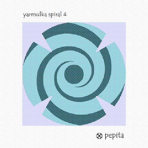 Kippah with spiral design in shades of lavender. A kippah is a brimless cap, usually made of cloth, traditionally worn by Jewish males to fulfill the customary requirement that the head be covered. It is worn by men in Orthodox communities at all times.