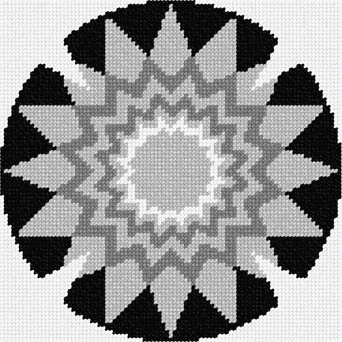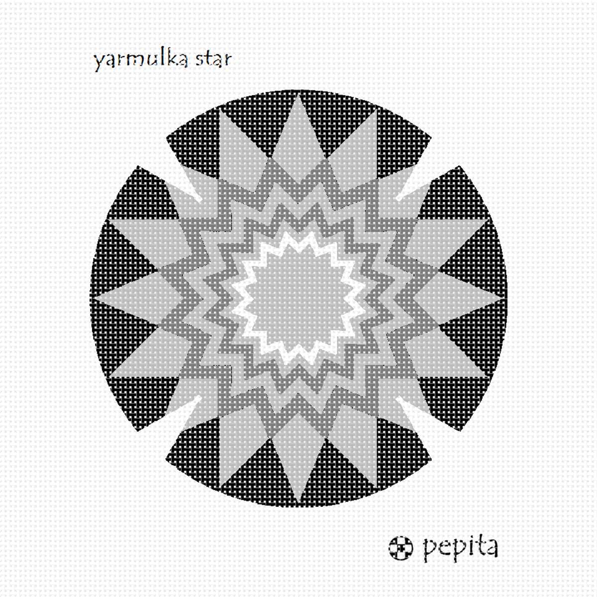 Seven 16-point stars one inside the other, in stark black white and gray shades. A kippah is a brimless cap, usually made of cloth, traditionally worn by Jewish males to fulfill the customary requirement that the head be covered. It is worn by men in Orthodox communities at all times.